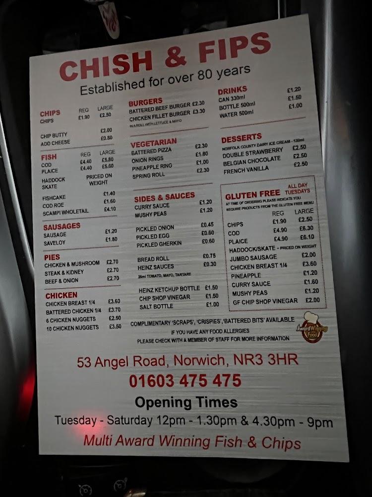 Nestled in the heart of Norwich, Chish & Fips offers an inviting atmosphere for anyone craving a delectable meal. The location is simple to access, featuring convenient free street parking and nearby parking lots. It sits just a five-minute stroll from the lovely Waterloo Park, making it ideal for those looking to savor their fish and chips while enjoying nature.